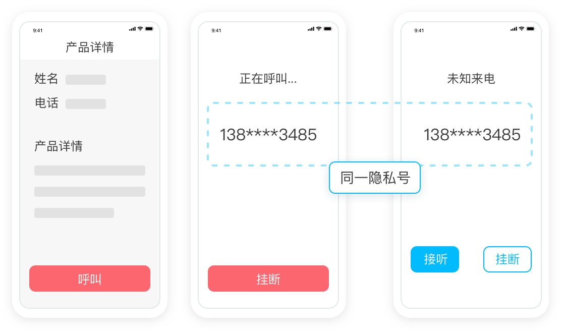 利用虛擬中間號(hào)技術(shù),在為用戶提供語(yǔ)音呼入呼出功能的同時(shí),對(duì)通話雙方號(hào)碼進(jìn)行隱藏,有效防止信息被抓取或跳單服務(wù)